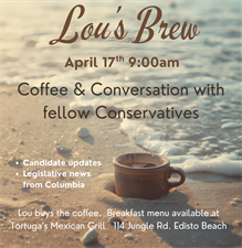 Come join local conservatives for conversation and updates on candidates and legislation. Lou picks up the coffee tab and there is a great breakfast menu available.